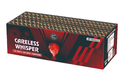 A dazzling low noise compound, 138 shots over 50 seconds, with mines, horsetails, fish, waterfall effects and minimal noise effects or loud bursts.