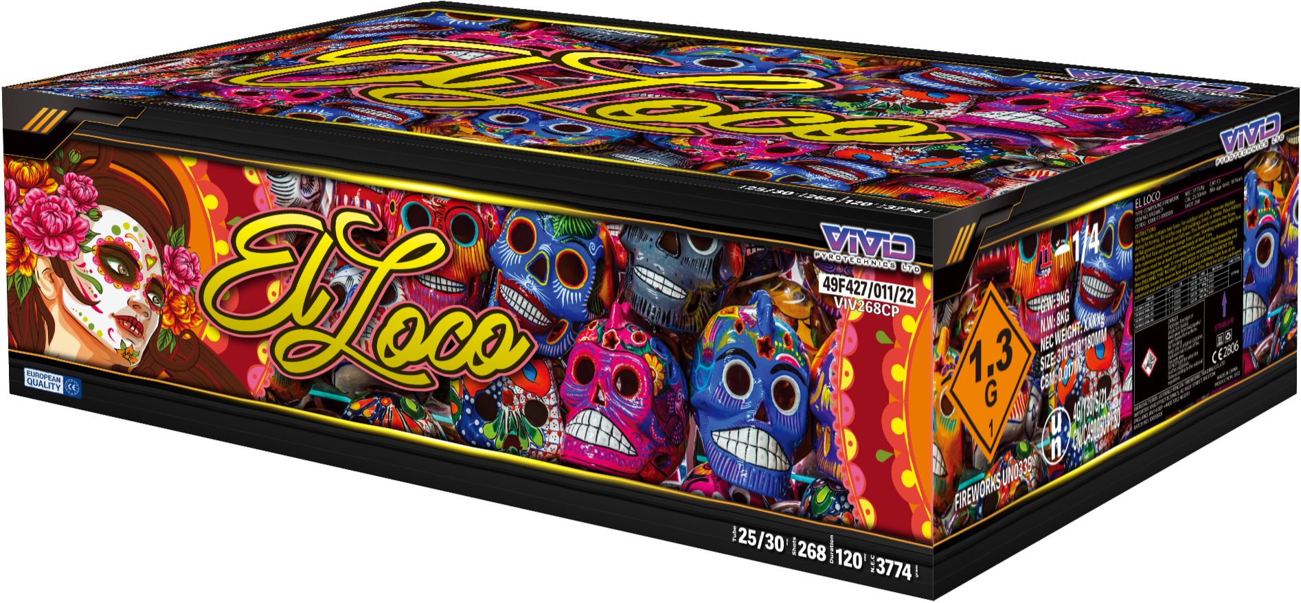 El Loco - Wow! 268 shots lasting an impressive 158 seconds. This is a lovely compound with some stunning effects. Honestly as really good example of a compound cake. You will not be disappointed with the effects.